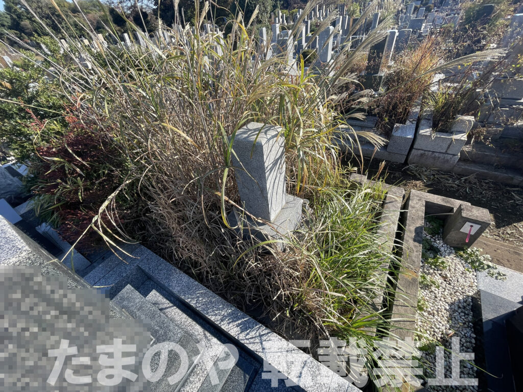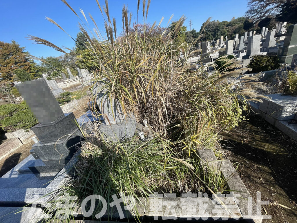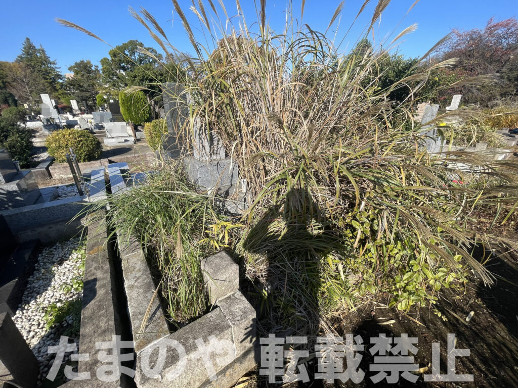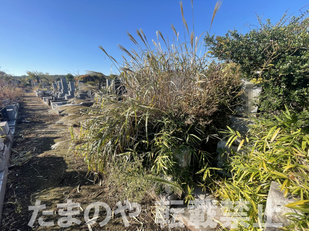 さらに、区画の外側へも雑草が越境しつつあり、隣接するお墓へ影響が及ぶ可能性も高まっていました。