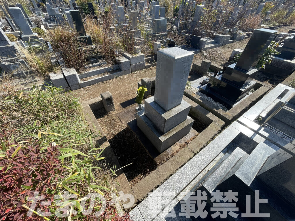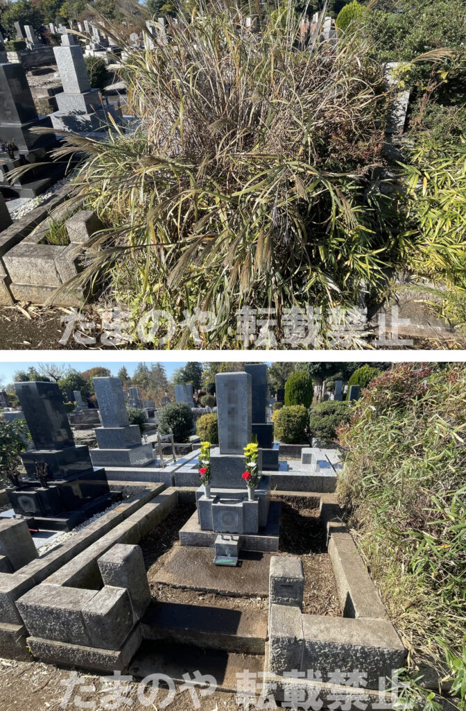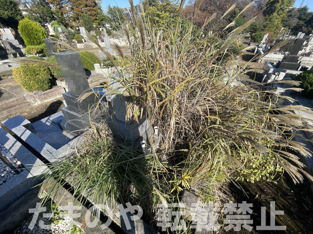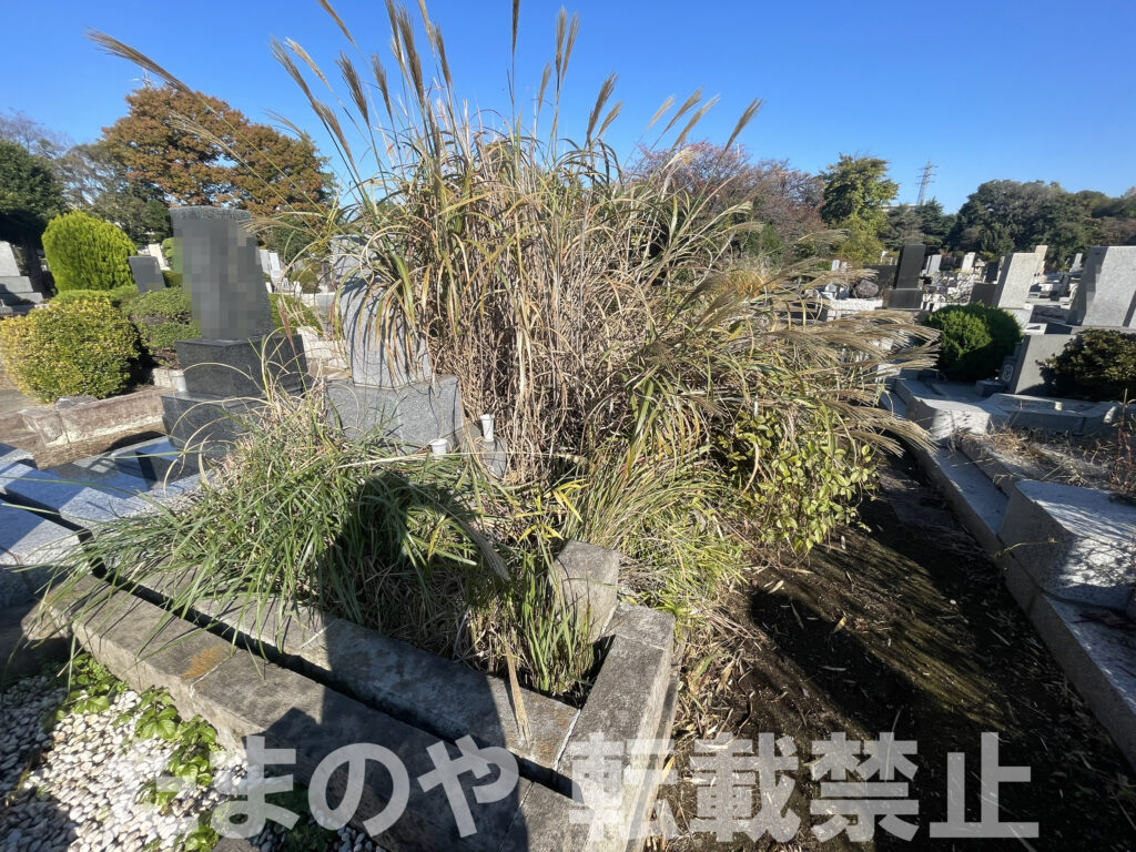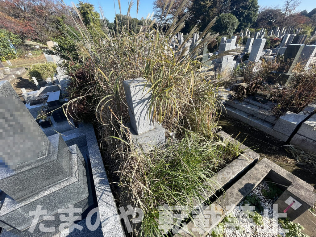 さらに、区画の外側へも雑草が越境しつつあり、隣接するお墓へ影響が及ぶ可能性も高まっていました。