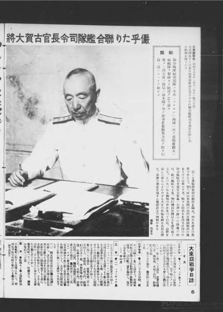 1944年(昭和19年)5月5日、大本営より古賀峯一の殉職が正式に発表されました。