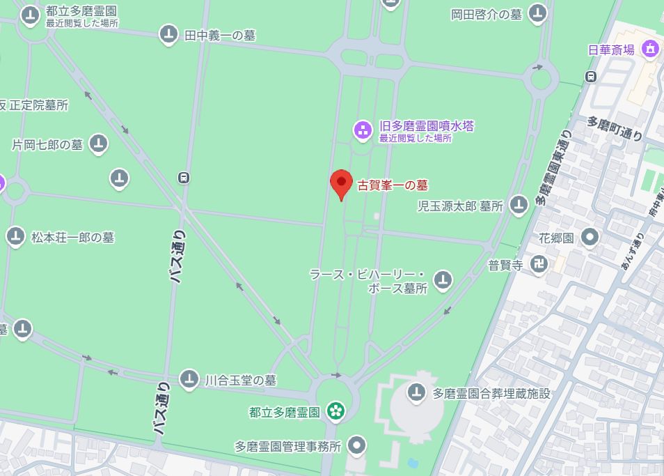古賀峯一のお墓は、多磨霊園の7区 特種1側 3番にあります。