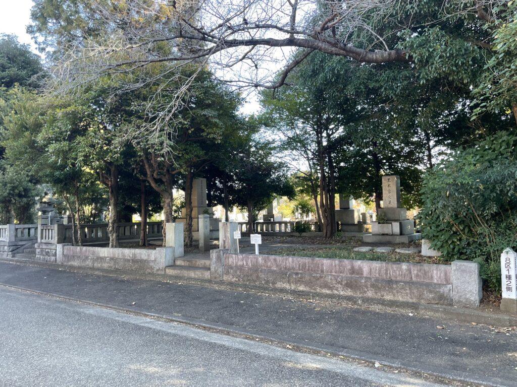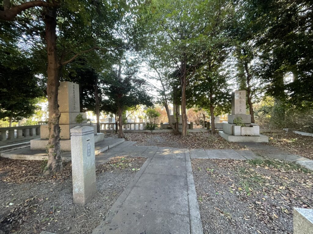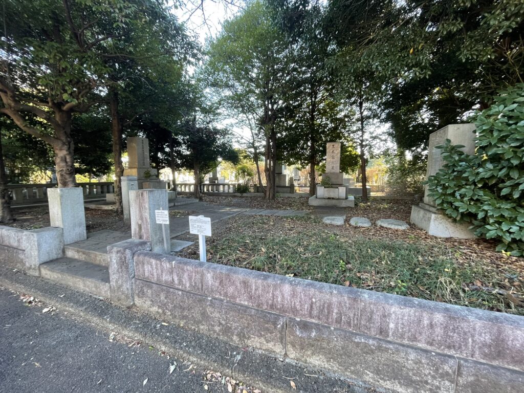 名誉霊域(7区)から噴水塔を挟んだ静かな一角に位置し、高橋是清の墓所に隣接する場所です。