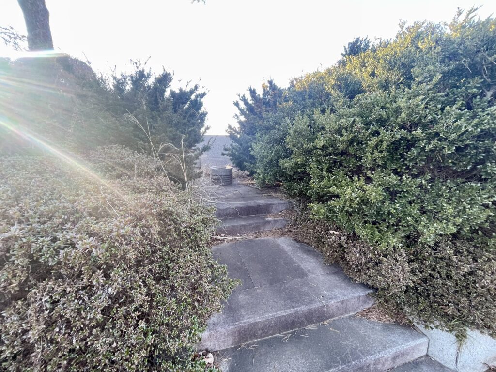青空と緑に包まれた並木道。穏やかな時間が流れるこの通りの一角に、長谷川家のお墓はあります。区画は「10区1種4側3番」。両脇を生い茂る植栽に囲まれた階段を上ると、落ち着いた雰囲気の墓所へと導かれます。